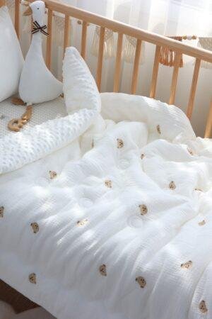 Winter Thick Muslin Cotton Embroidered Bear Tiger Baby Duvet,Newborn Thermal Comforter,Infant Baby Crib Blanket with filler