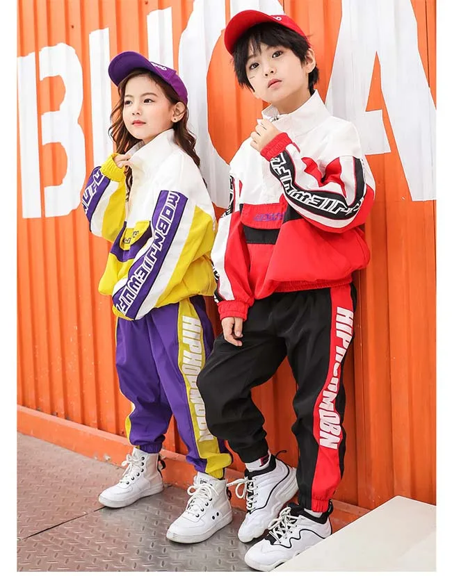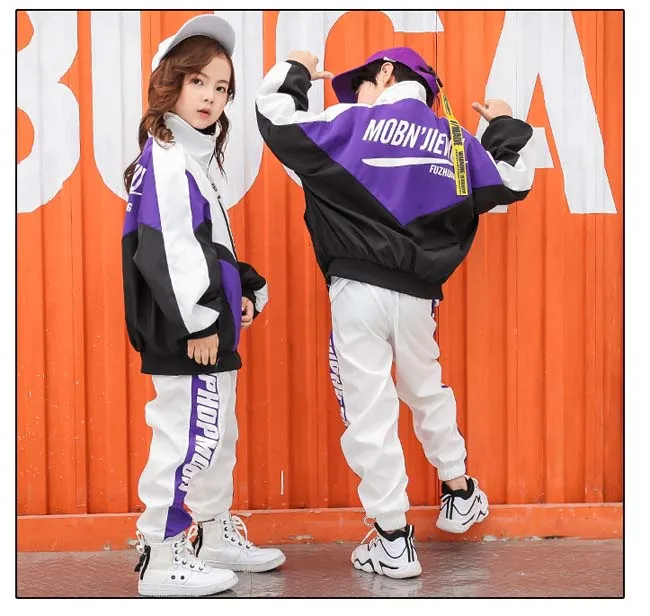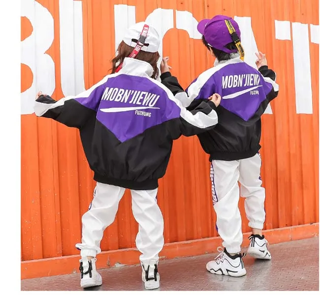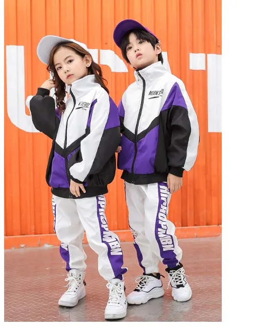 Boys Girls Jacket tops Sweatpants Tracksuit Hip Hop Dance Show Costumes Big children clothes For Teenager 10 12 14 16 18 Years